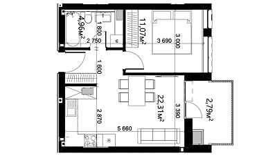 Загальна площа: 41,12 м